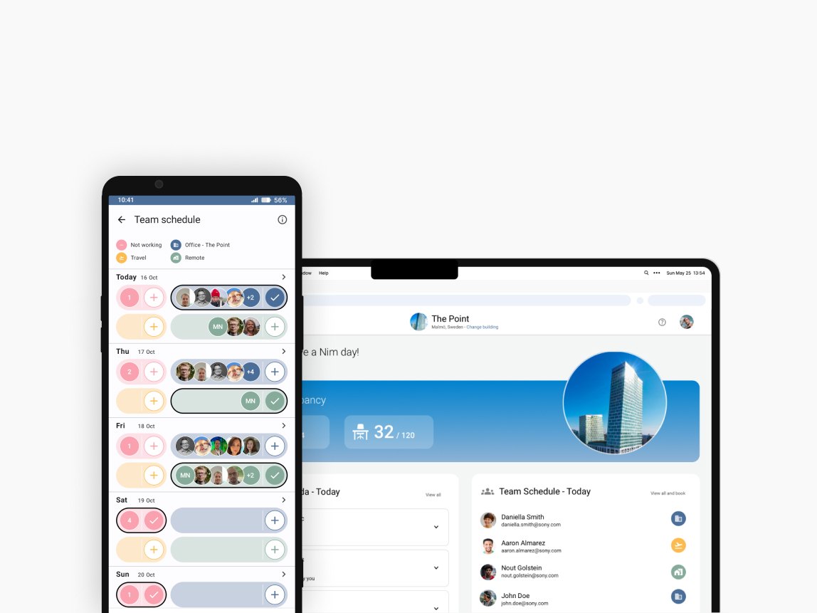 Book office resources from anywhere. Use wayfinding to get there. Find colleagues quickly. Report a problem in the facilitly. All this is possible, and more.