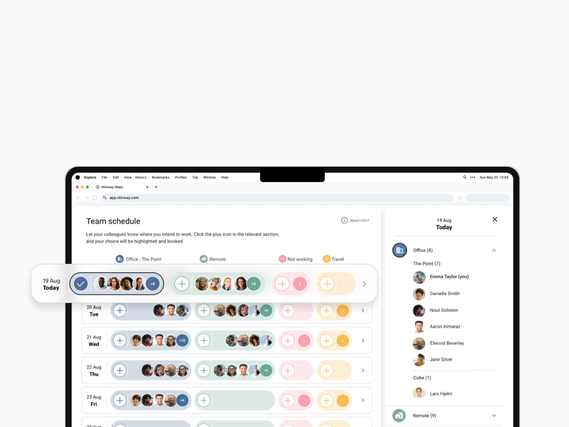 Use the Team schedule feature to see when colleagues will be at the office—and where they will work.