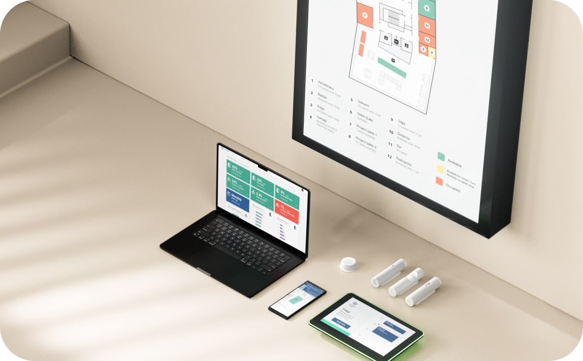 All the essentials. Plug-and-play installation. Zero maintenance. With Nimway Go, any company can start boosting office space usage right away.