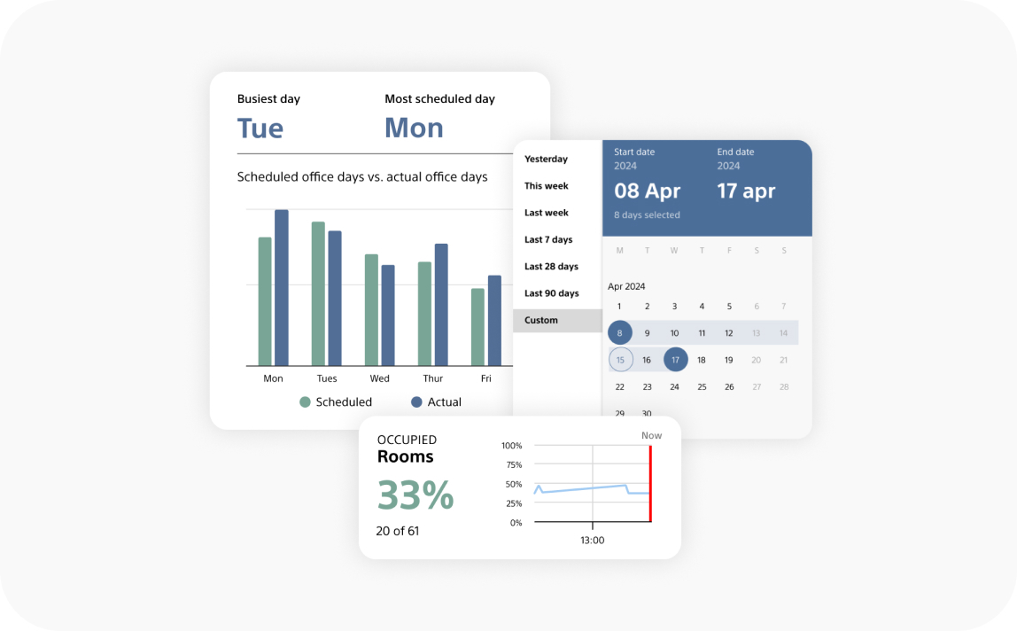 Reveal your space wastes and maximize every square meter with Nimway analytics. It compiles all your real-time sensor data and room reservations into easy-to-understand insights. Then, make strategic decisions about your real estate with confidence.