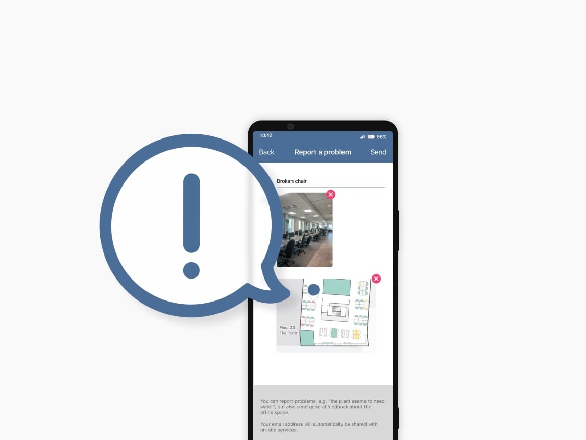 Book office resources from anywhere, at any time. Use wayfinding to get there. Find colleagues quickly. Report a problem in the facility. All this is possible, and more.